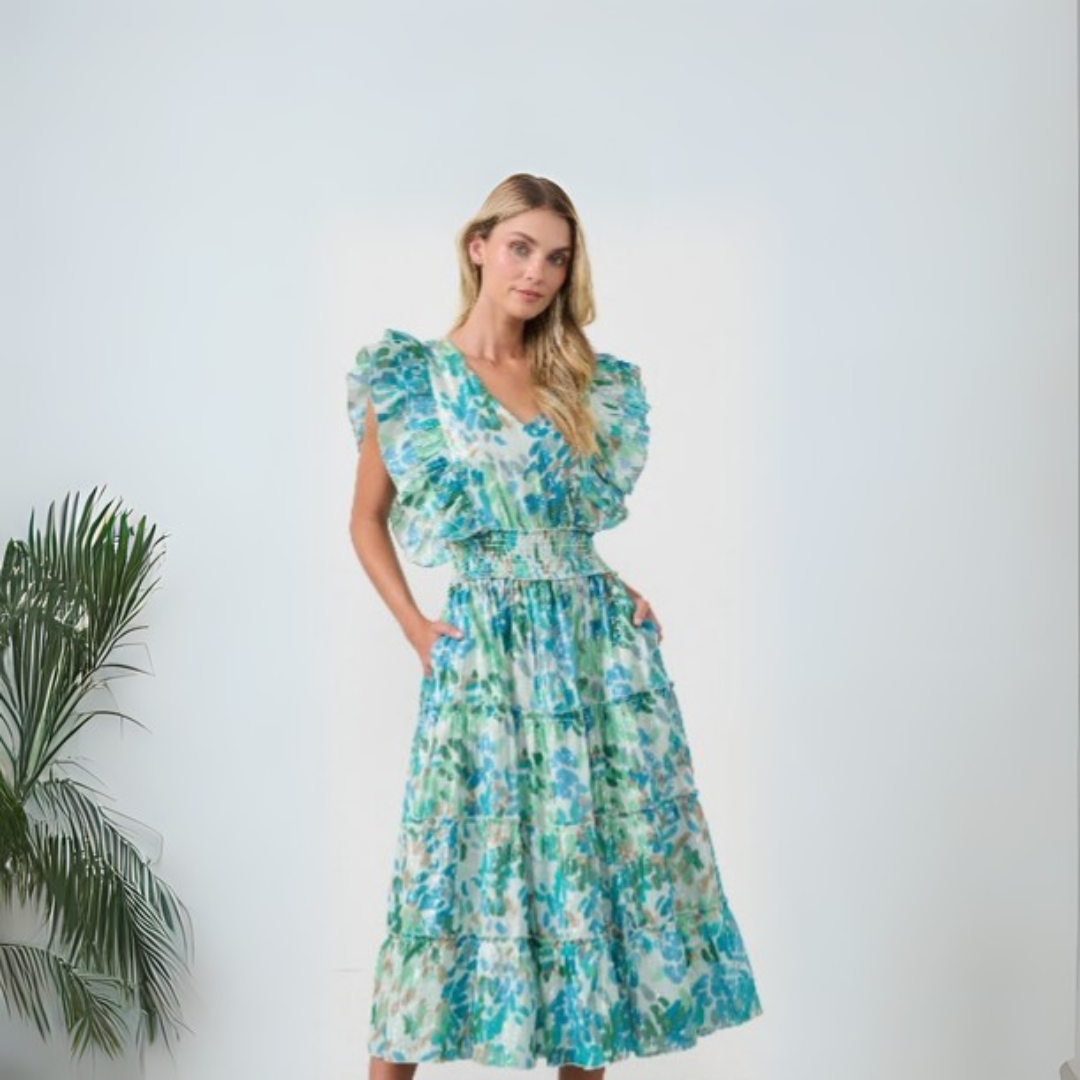 Butterfly Shape Dress w/Lurex Sparkle - Aqua | Holmes & Fallon