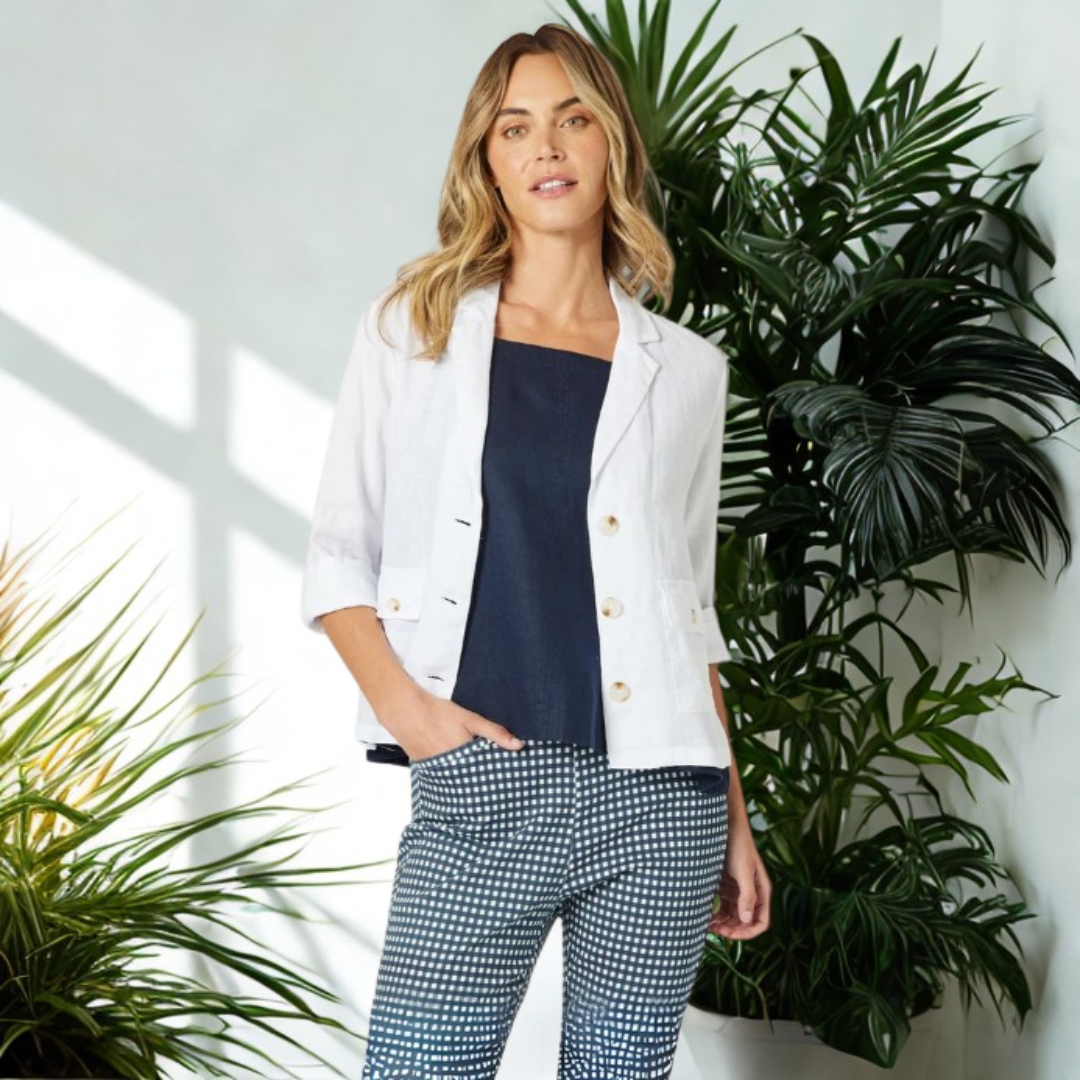 - The Danielle Cropped Linen Blazer by Gordon Smith is the perfect unstructured blazer we all need this season!