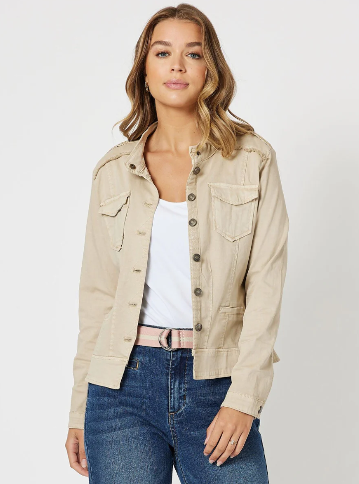 - Sparkle trim detail at the epaulettes & down the centre front placket